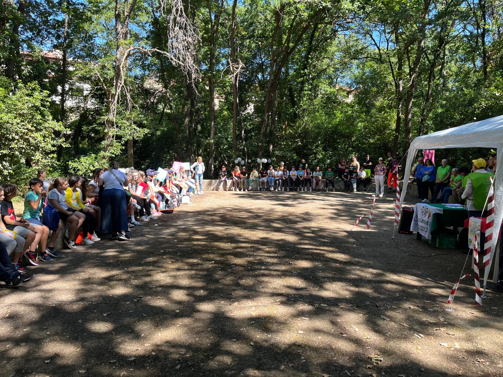 Durante la mattinata i ragazzi hanno illustrato la cartellonistica realizzata a scuola ispirata alla Carta dei Diritti dei Bambini dell’Unicef che è stata successivamente installata all’interno del bosco.