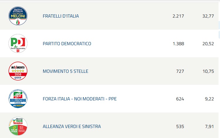 Elezioni 2024, i primi cinque partiti a Bracciano