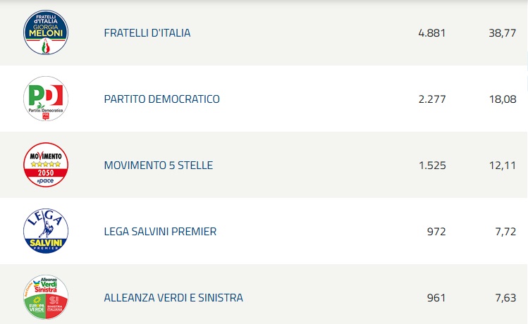 Elezioni 2024, i primi cinque partiti a Cerveteri