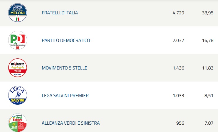 Elezioni 2024, i primi cinque partiti a Ladispoli