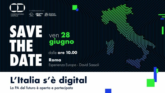 Venerdì 28 giugno dalle ore 10, presso Esperienza Europa – David Sassoli a Roma, si terrà l’evento “L’Italia s’è digital. La PA del futuro è aperta e partecipata”. L’evento è organizzato dall’Osservatorio Digitale in collaborazione con PA Social, Fondazione Italia Digitale e Digitalepopolare.it