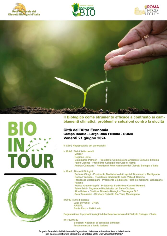 “Bio in tour è un progetto di ambito nazionale – dichiara Andrea Campurra, Presidente dell’Associazione Nazionale di Produttori Sardegna Bio – il cui obiettivo principale è quello di promuovere l’informazione e la conoscenza del biologico al fine di contribuire al potenziamento e all’innovazione dei sistemi locali. Gli interventi sono orientati ad offrire un apporto corretto allo sviluppo economico del territorio attraverso la formazione ed informazione sul settore biologico e le sue opportunità partendo dall’adesione ai bio distretti territoriali. I temi trattati saranno molteplici e tra questi, come nel caso del convegno del 21 giugno, i cambiamenti climatici ed il problema della siccità”.