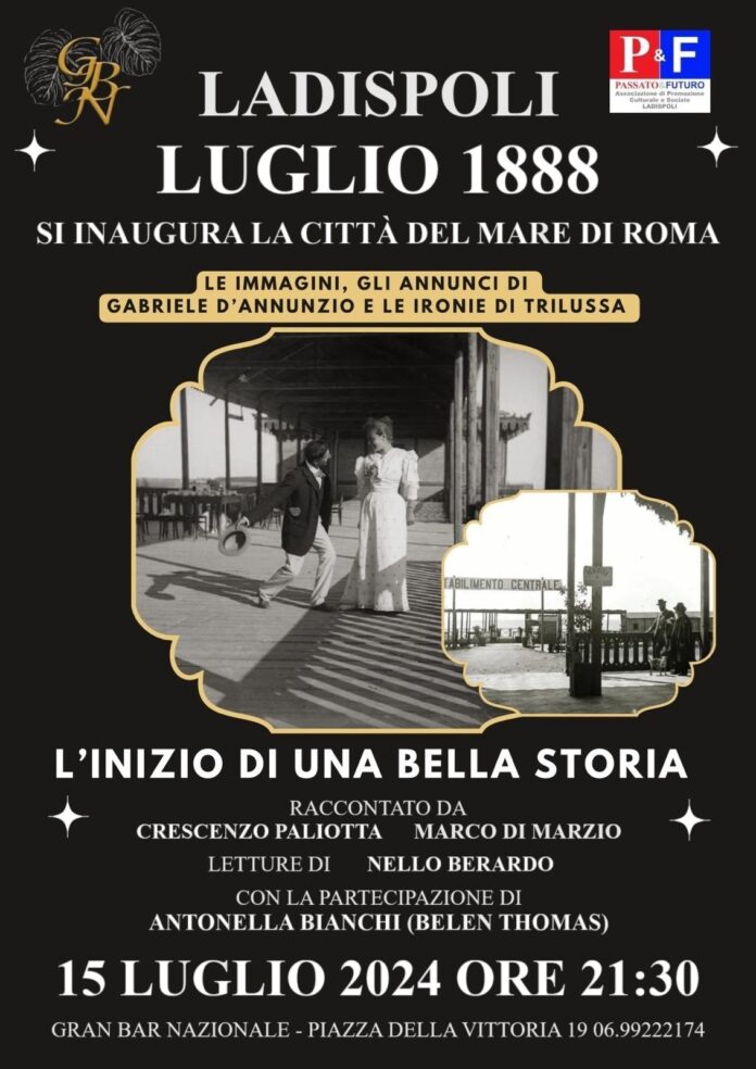 Il prossimo lunedì 15 luglio 2024, ore 21:30, presso lo storico bar della città infatti si ripercorreranno gli eventi che hanno caratterizzato l’inaugurazione di Ladispoli e i suoi primi passi compiuti a partire dal 1° luglio 1888.