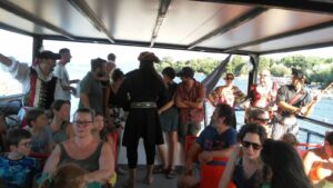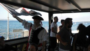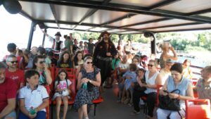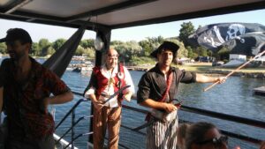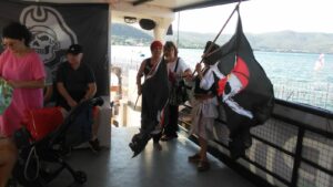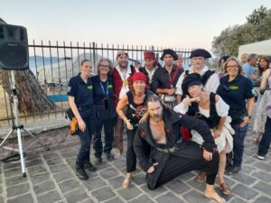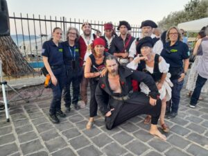 Alle 18:30, i pirati della Motonave Sabazia II sono sbarcati nel Comune di Anguillara Sabazia presso Piazza del Molo di Anguillara Sabazia, per una breve esinizione. Al rientro a Bracciano della nave,i passeggeri hanno potuto partecipare alla divertente degustazione “Tutti a Cena con i Pirati” in collaborazione con Teatro Helios e la Cooperativa Pescatori con il suoTesoro del Lago, un menù a base di pesce di lago da loro pescato e sapintemente preparato.Questo evento è stato una grande occasione di divertimento per grandi e piccini! La giornata si è conclusa con uno spettacolo di ballo a cura della scuola di danza Bailando di Bracciano. Dalle 22:00 fino a mezzanotte, tutti i partecipanti sono stati invitati a ballare sotto le stelle, creando un’atmosfera magica e coinvolgente. Il Presidente del Consorzio del Lago di Bracciano, Avv. Francesco Pizzorno, ha espresso grande soddisfazione per la riuscita dell’evento, dichiarando: “Siamo estremamente lieti di aver ospitato la seconda edizione de ‘Il Lago in Festa’, un evento che rappresenta non solo un’occasione di festa, ma anche un’importante opportunità per valorizzare il nostro splendido territorio e le sue straordinarie risorse naturali e culturali. Questo evento, che ha visto la partecipazione attiva di tutti e tre i comuni che si affacciano sul Lago di Bracciano, è un esempio concreto di come la collaborazione e la sinergia possano dar vita a iniziative di grande impatto e significato per la nostra comunità.