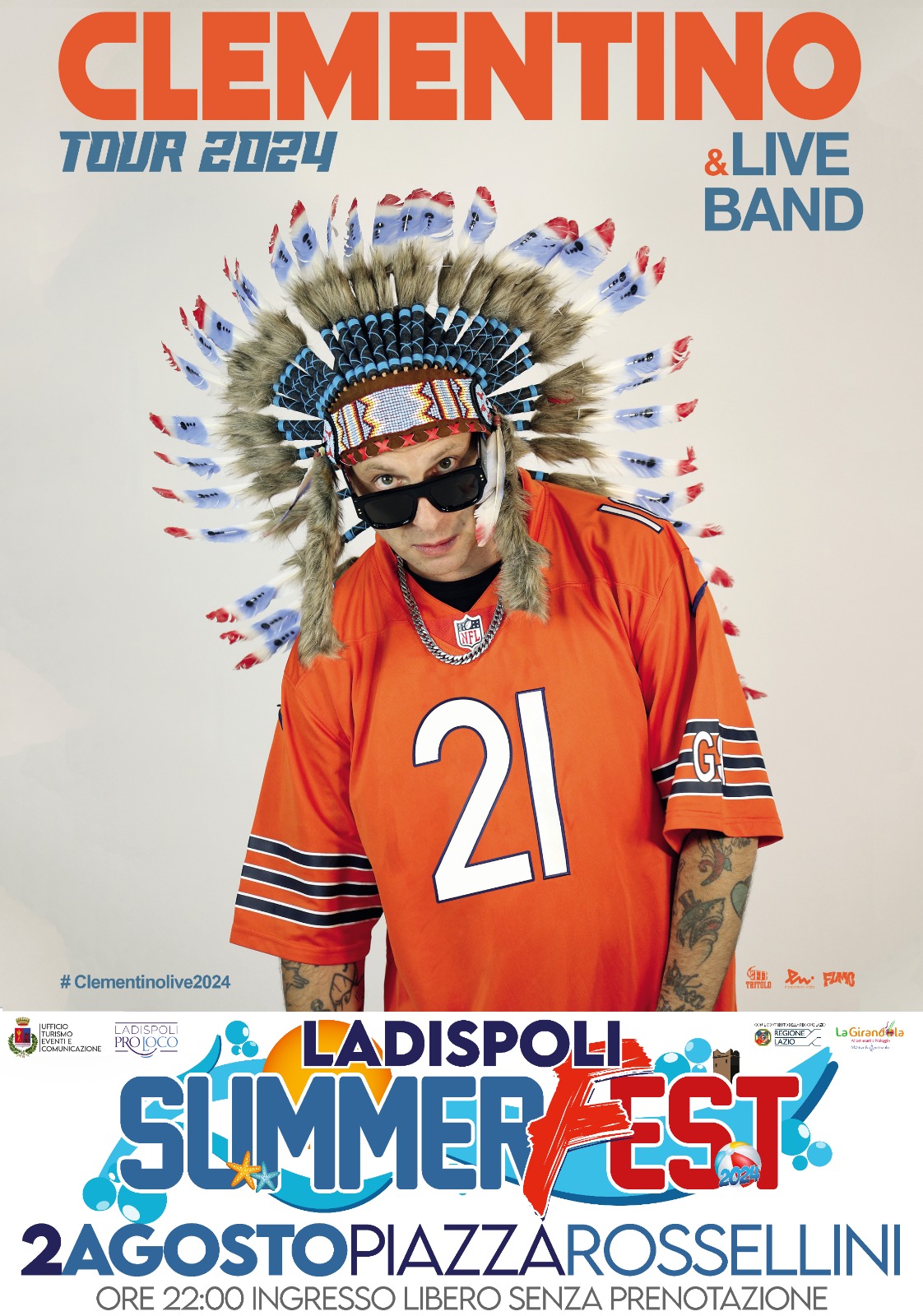 Ad oggi, Clemente Maccaro è uno dei rapper più apprezzati del Paese, giudice di The Voice Italy e mattatore di un tour 2024 che lo vede scatenarsi nelle migliori piazze italiane. Sì perché Clementino nei suoi live tutto fa, meno che risparmiarsi. Amante del teatro, passione che l’ha portato a scrivere un’opera insieme al fratello che mixa rap e recitazione, Clementino utilizza le tecniche di interpretazione per gestire meglio l’improvvisazione ed il linguaggio del corpo sul palco. Ci si aspetta dunque uno spettacolo fra i più incredibili visti a Ladispoli.
