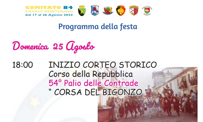 Per la realizzazione del Corteo Storico in costume, 54° Palio delle Contrade e Corsa del Bigonzo è istituito: