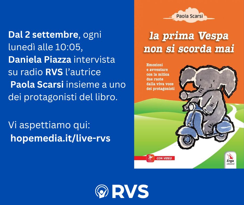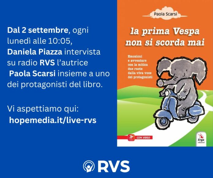 Inizia il 2 settembre alle 10.05 su radio RVS un ciclo di puntate dedicate al mio La prima Vespa non si scorda mai. Ogni settimana interverrà un protagonista del libro. Conduce Daniela Piazza.