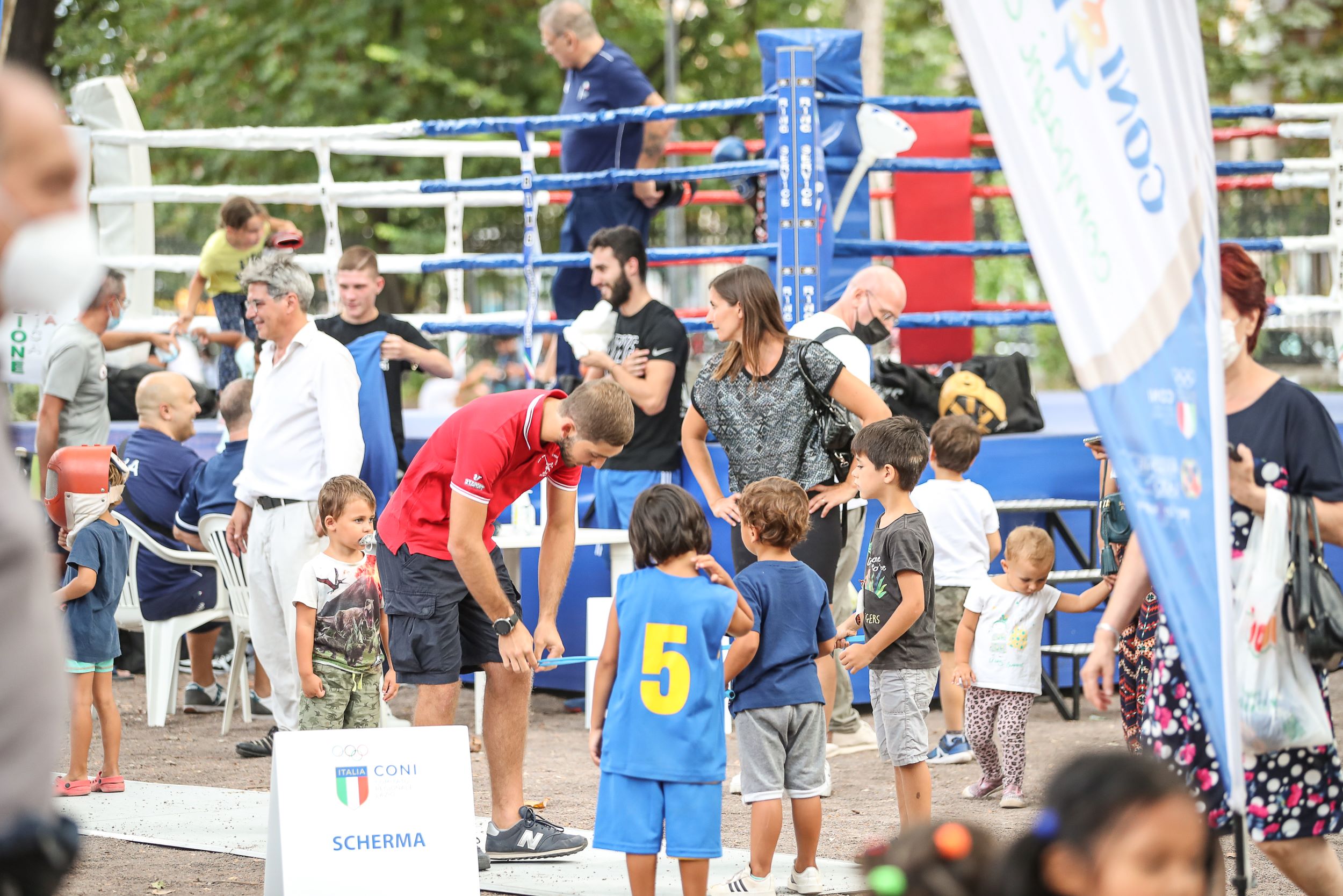 Per nove giorni consecutivi, dalle ore 18.30 alle 22.30, sarà allestita un’area multi sportiva attrezzata con postazioni per la pratica di 10 discipline sportive. Nei giardini della grande piazza romana, svetterà una parete di arrampicata sportiva da boulder, una delle discipline più apprezzate dai giovanissimi. E poi la pedana di scherma, i campi di bocce, badminton, pickleball e rugby, le postazioni per la dama, il tunnel gonfiabile per giocare a baseball, l’area per la pesistica, e il simulatore per il lancio di precisione della pesca sportiva.