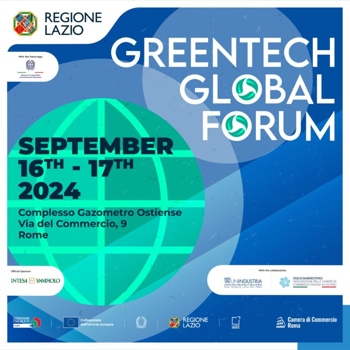 La Regione Lazio, in collaborazione con il ministero degli Affari esteri e della Cooperazione internazionale, Simest (Società del Gruppo CDP per l’internazionalizzazione), Sace (Agenzia italiana per il credito all’esportazione), Ice (Agenzia per il Commercio Estero), Unindustria, Assocamerestero e con il supporto di Intesa Sanpaolo, presenta il “Greentech Global Forum”, l’evento internazionale di matching sulle tecnologie per la Transizione Energetica, l’Economia Circolare, l’e-Mobility, la Blue Economy.