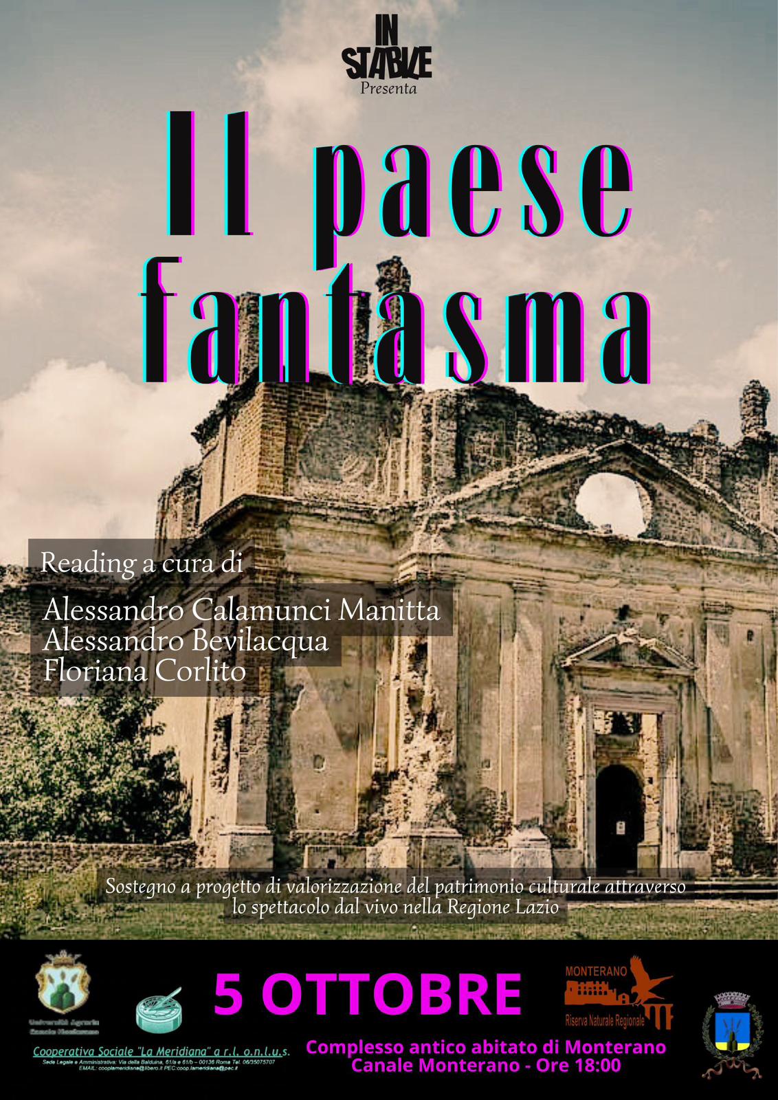 Il secondo, il 5 ottobre, si chiama “Il paese fantasma” èd proprio basato su Monterano: “Fra i borghi abbandonati della nostra Penisola c’è quello dell’Antica Monterano, svuotata a causa dell’epidemia malarica nel corso del XVIII secolo. Con Il paese fantasma analizzeremo i vari personaggi che hanno calpestato questo luogo e ci interrogheremo sull’impatto che questi hanno avuto sul territorio.”