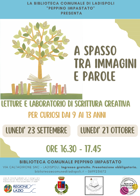 Lunedì 23 settembre e lunedì 21 ottobre, alle ore 16:30, si terranno gli incontri di A spasso tra immagini e parole, laboratorio di lettura e scrittura: attraverso la lettura degli albi illustrati, capaci di attivare curiosità e stupore per la forza narrativa delle loro immagini e parole, i partecipanti saranno stimolati a costruire un ponte di collegamento tra le emozioni e il pensiero creativo.