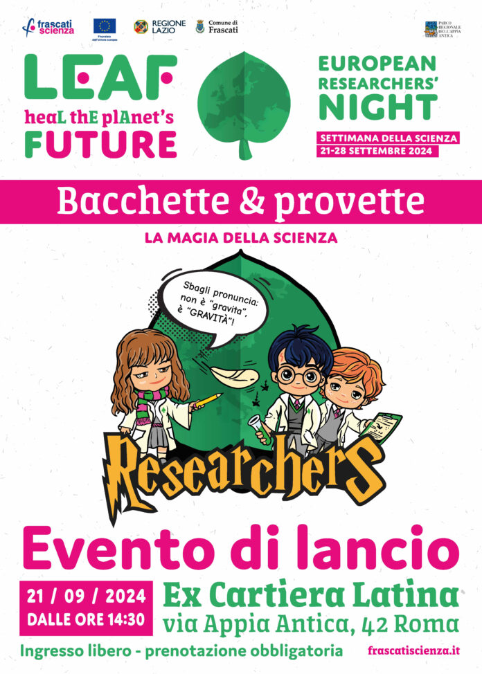 Sabato 21 settembre, Bacchette & Provette in fibrillazione a Roma, dalle 14:30, pronte per dare il via alla Settimana della Scienza, in attesa della magica Notte Europea dei Ricercatori e Ricercatrici LEAF, targata Frascati Scienza, di venerdì 27 settembre che presenta 500 eventi in 20 città, in compagnia di quasi 2000 ricercatrici e ricercatori in tutta Italia!