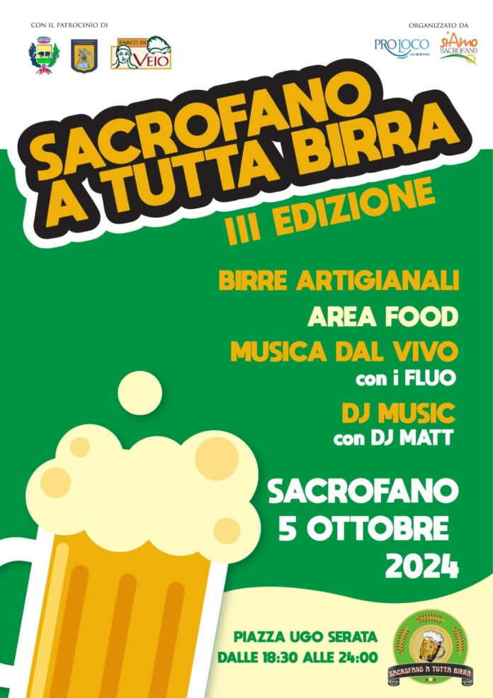 Dopo il successo delle edizioni precedenti torna a Sacrofano, il 5 ottobre, “Sacrofano a tutta Birra”, l’evento ad ingresso gratuito dedicato alle birre artigianali italiane, quest’anno vede un’ampia selezione di birrifici laziali: