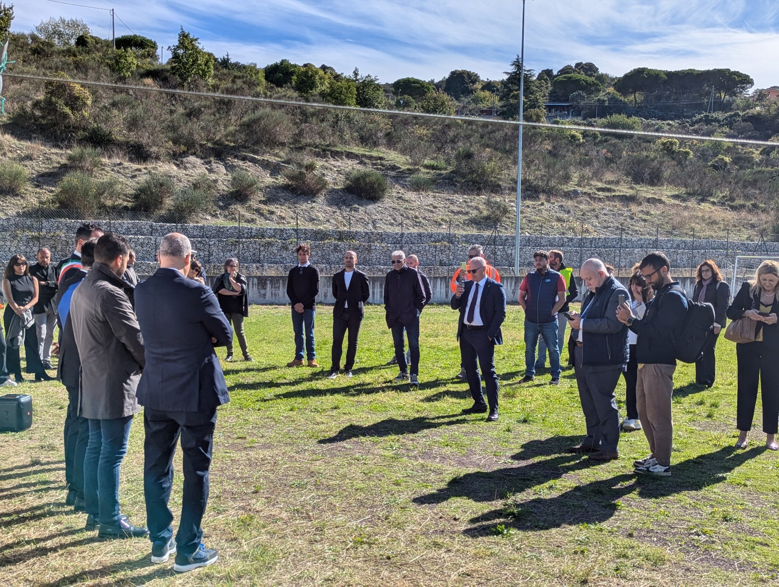 Il Vicesindaco della Città metropolitana di Roma Capitale, Pierluigi Sanna, delegato dal Sindaco Roberto Gualtieri ai progetti PNRR, ha inaugurato questa mattina, assieme al Sindaco di Castel San Pietro Romano Gianpaolo Nardi, il cantiere per i lavori di rigenerazione del campo da calcio a 11 del Comune metropolitano. Presenti alla cerimonia anche il Direttore del Dipartimento PNRR di Città metropolitana, Stefano Carta, l’Assessore ai Lavori Pubblici del Comune di Castel San Pietro Romano, Filippo Fiasco, i tecnici responsabili dei lavori e altre autorità del territorio.