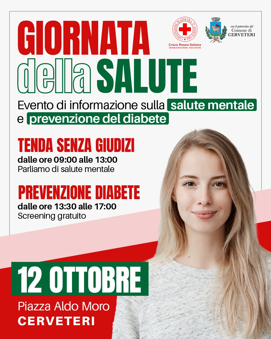 Una giornata dedicata alla salute, al benessere e alla prevenzione. Ad organizzare l’iniziativa, in programma sabato 12 ottobre a partire dalle ore 09:00 in Piazza Aldo Moro a Cerveteri, è la Croce Rossa Italiana insieme alla Consigliera comunale di Cerveteri Adele Prosperi.