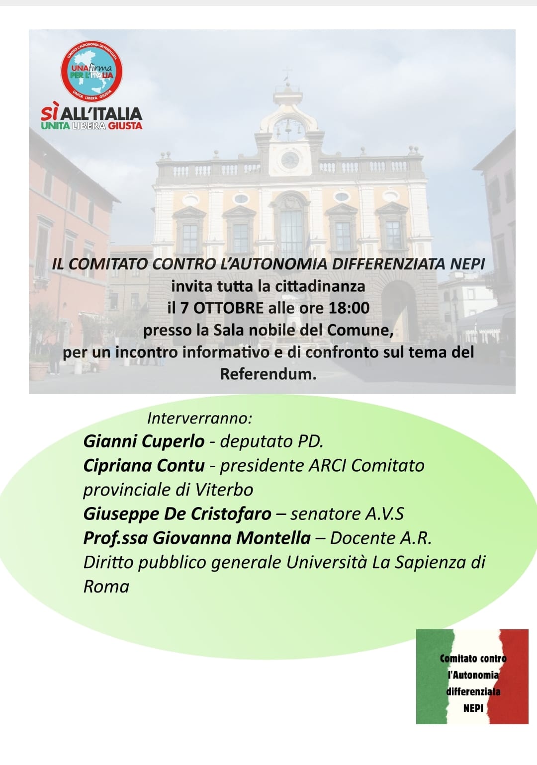 Nepi, autonomia differenziata, appuntamento con il comitato