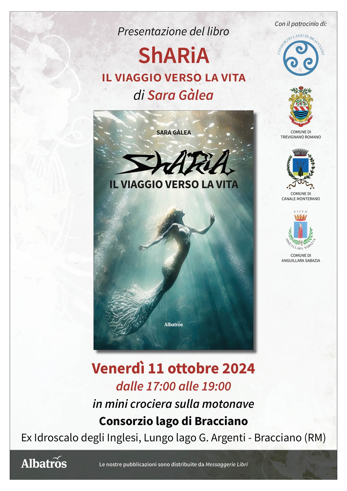 L’11 ottobre, a bordo di un battello che navigava sulle acque del lago di Bracciano, si è tenuta la presentazione del libro Sharia, scritto da Sara Galea. Il pubblico ha vissuto un’esperienza immersiva e profonda grazie alle parole dell’autrice, che ha condotto i presenti in un viaggio interiore attraverso il simbolismo della natura circostante. Sara ha scelto questo luogo per la sua capacità di riflettere la calma e la profondità dell’anima: “l’acqua è uno specchio”, ha detto, invitando alla riflessione e alla scoperta si sé.