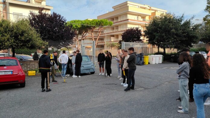 Lezione sul campo per gli allievi dell’Istituto Superiore “Giuseppe Di Vittorio” di Ladispoli, Indirizzo Costruzioni, Ambiente e Territorio. Il 10 ottobre 2024, la classe 4^A CAT ha svolto un’attività pratica di rilievo topografico nel cortile della scuola, guidata dai professori Massimo Cerrocchi e Gianluca Caruso. L’esercitazione, mirata a consolidare le competenze acquisite dagli allievi nelle recenti lezioni teoriche, si è concentrata sul rilevamento di una poligonale chiusa attorno all’edificio scolastico.