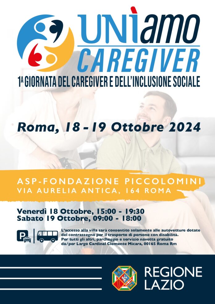 La prima Giornata del caregiver e dell’inclusione sociale è organizzata dalla Regione Lazio con il sostegno di EBTL (Ente Bilaterale Turismo del Lazio), Banca del Fucino e Poste Italiane.