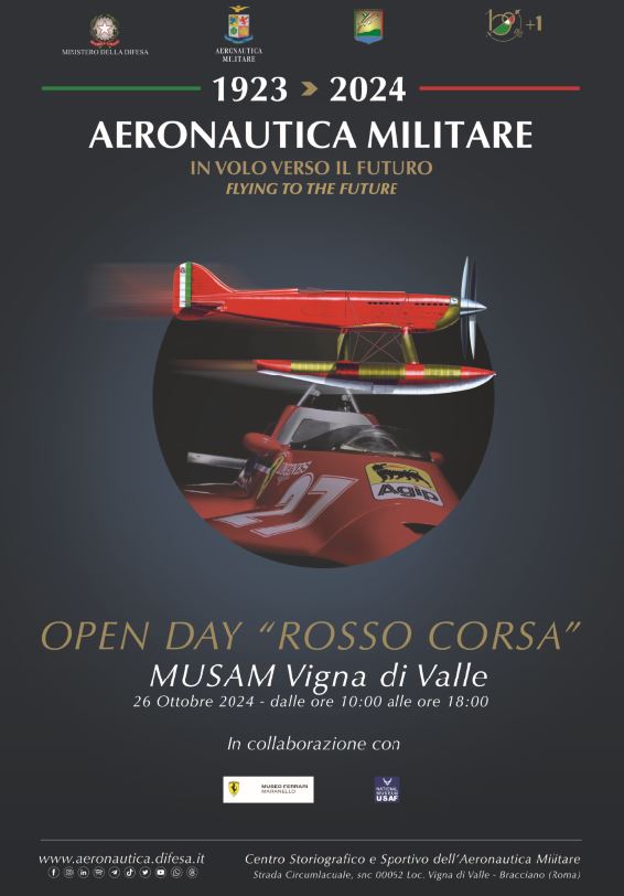 Per l’occasione il Comandante della Base, Colonnello Dario Bovino, aprirà le porte dell’antico idroscalo: appassionati e curiosi avranno la possibilità di accedere gratuitamente alle strutture, per una giornata all’insegna della velocità dal tema “ROSSO CORSA”. Grazie ad importanti collaborazioni nazionali e internazionali, sarà possibile vedere in esposizione statica l’originale Ferrari 126CK – 1980 del pilota Gilles Villeneuve, la tuta, il volante e il casco di Charles Leclerc, tutti provenienti dal Museo Ferrari di Maranello. Sarà l’occasione per ricordare le belle sfide tra la Rossa di Maranello e l’F-104 e l’Eurofighter dell’Aeronautica Militare. Inoltre, saranno presenti anche molti altri interessanti cimeli provenienti dal National Museum dell’USAF (United States Air Force). L’evento sarà preceduto da una due giorni di conferenze e seminari ad invito, per questioni di capienza dei locali: Mercoledì 23 ottobre la giornata sarà dedicata alle scuole, mentre Giovedì 24 si terrà un forum storico-scientifico con la presenza di illustri storici e rappresentanti dell’industria.