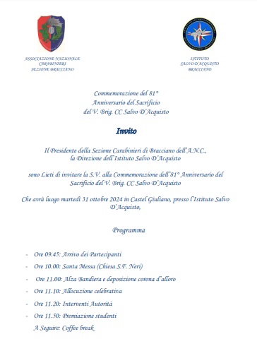 A Castel Giuliano la commemorazione di Salvo D’Acquisto