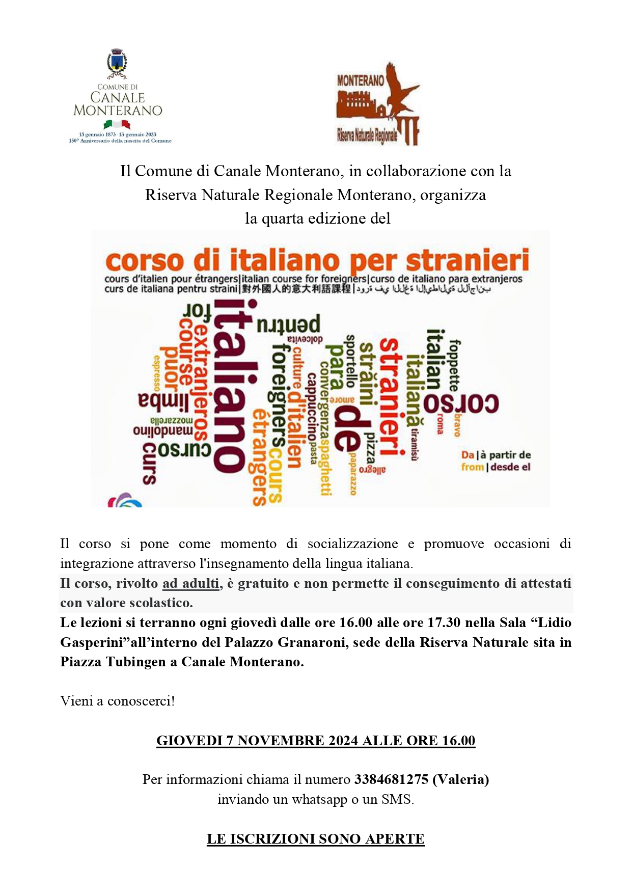 Canale Monterano, il 7 comincia il corso d’italiano per stranieri