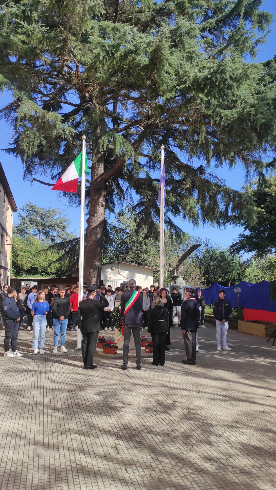 Successivamente, la cerimonia è proseguita con l’alzabandiera e la deposizione di una corona d’alloro in onore della medaglia d’oro al valore militare concessa a Salvo D’Acquisto. Questi gesti simbolici hanno rappresentato il tributo di tutti i presenti un esempio di coraggio e integrità straordinari. Alla deposizione della corona hanno partecipato il presidente dell’ANC di Bracciano Cavaliere Giovanni Ciraolo, il sindaco di Bracciano Marco Crocicchi, il comandante della Compagnia dei Carabinieri di Bracciano Simone Notaro e la dirigente scolastica dell’istituto Lucia Dutto.