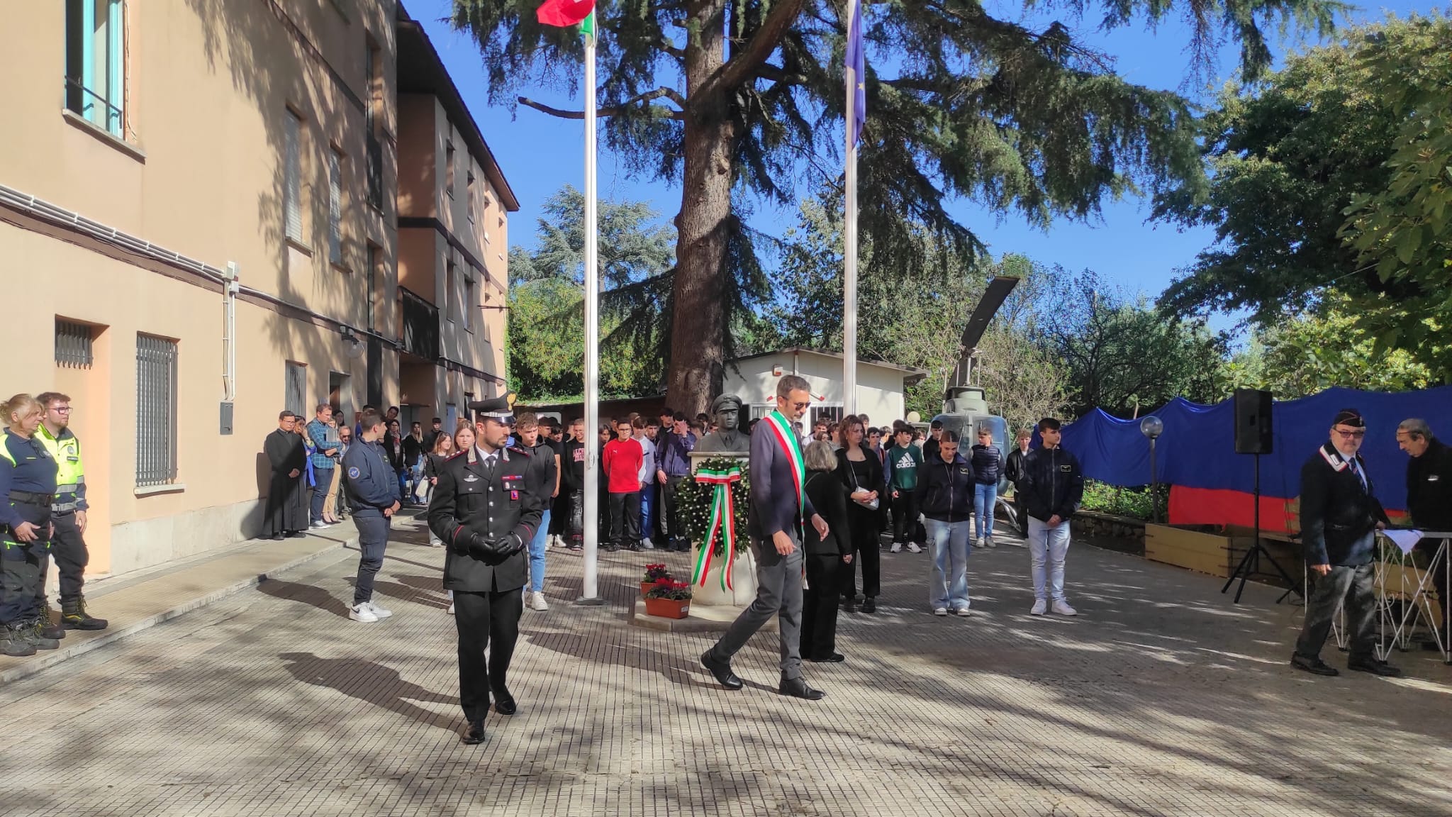 Presenti alla cerimonia anche i Sindaci di: Bracciano Marco Crocicchi, Manziana vicesindaco Remo Fiorucci, Trevignano Romano Claudia Maciucchi, Canale Monterano Alessandro Bettarelli. Il sindaco di Bracciano ha preso la parola, rivolgendosi in particolare agli studenti: “È a voi che mi rivolgo oggi: spesso, partecipando a questi eventi, ci sembra di parlare di realtà lontane, ma in realtà questi sono avvenimenti accaduti non troppo tempo fa, in luoghi vicini a noi. Ricordare queste storie è importante per il nostro presente, soprattutto in un mondo che continua a essere attraversato da conflitti. Ognuno di noi ha l’opportunità di onorare il sacrificio di persone come Salvo D’Acquisto, vivendo i valori di altruismo, rispetto e amore per il nostro Paese”.