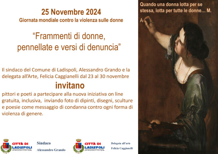 “L’amministrazione comunale chiama a raccolta penne, matite e pennelli di poeti, pittori ed artisti creativi in occasione della Giornata internazionale contro la violenza sulle donne”.