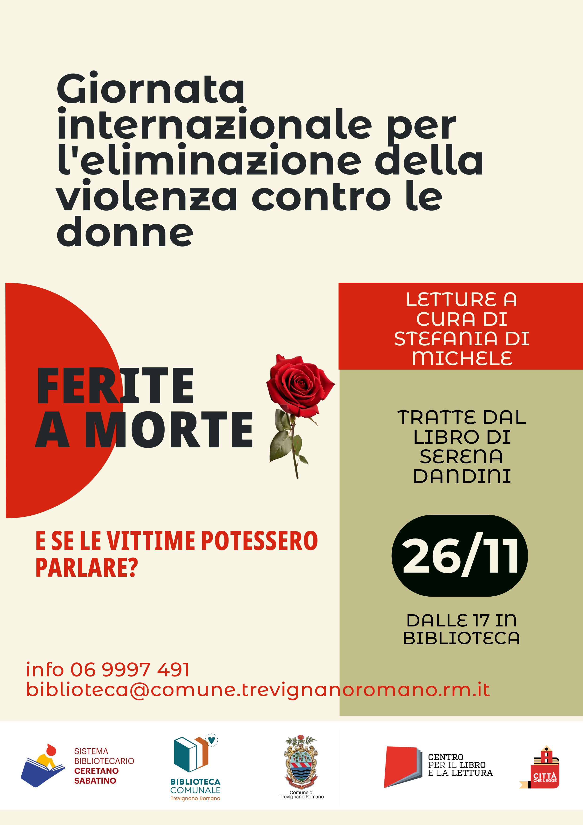 Martedì 26 novembre nella biblioteca comunale di Trevignano ci sarà una lettura ad alta voce e condivisa di brani estratti da Ferite a morte, libro scritto da Serena Dandini, scrittrice, autrice e conduttrice televisiva, con la collaborazione di Maura Misiti, demografa e ricercatrice del CNR, pubblicato nel 2014.