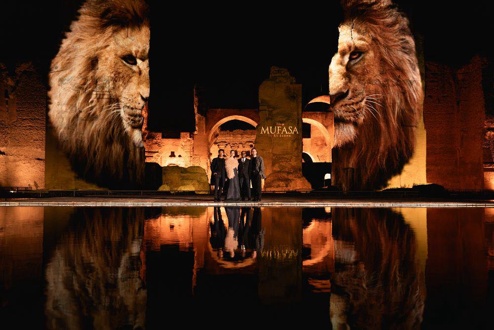 Il regista Barry Jenkins e le voci italiane del film, Luca Marinelli, Alberto Boubakar Malanchino ed Elodie, hanno partecipato a uno straordinario video mapping sul monumento e sull’acqua, con immagini ispirate al mondo di “Mufasa: Il Re Leone”, che ha animato le imponenti architetture delle Terme, in cui, dopo 1500 anni, l’acqua è tornata protagonista attraverso il nuovo specchio installato nel 2024.