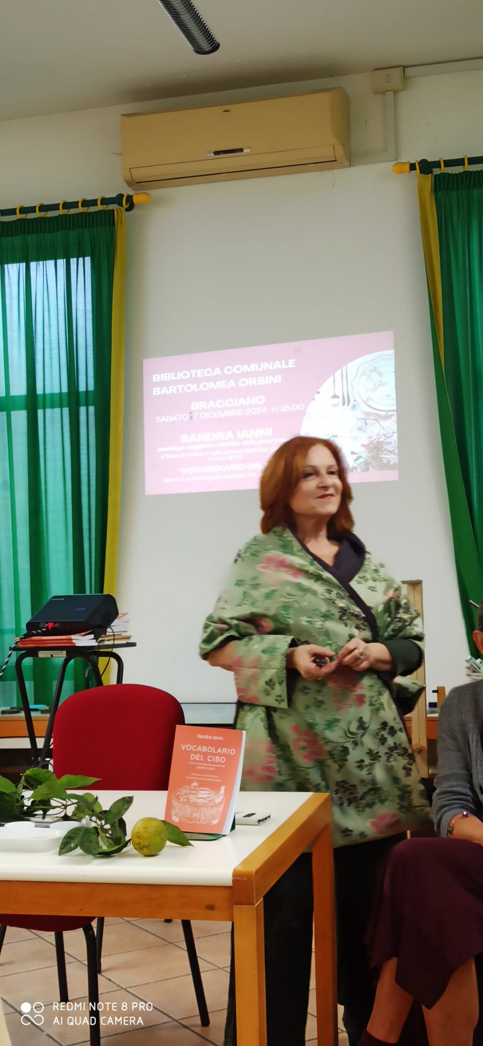 Nella Biblioteca Comunale Bartolomea Orsini di Bracciano, Sandra Ianni ha presentato il suo quinto libro “IL VOCABOLARIO DEL CIBO. Storia e curiosità sulle pietanze che portiamo in “tavola”. Pensando al termine vocabolario ci viene in mente una banale ricerca di termini che aggiunge fatica allo studio anziché alleviarlo ma il vocabolario dell’autrice ha un particolare valore. Come ha sottolineato il vice sindaco Biancamaria Alberi nel porgere i saluti istituzionali “questo libro si rivela culturalmente avanzato perché propone un approccio al cibo più consapevole, che incontra i temi caldi della sostenibilità…e porta con sé la storia culturale dei popoli “