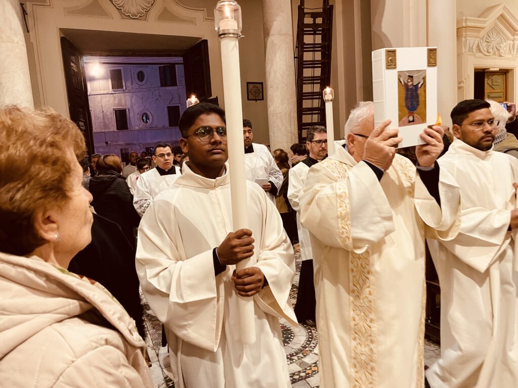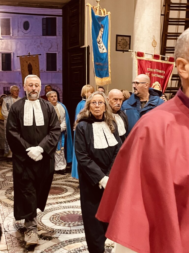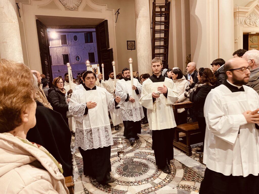 Sua Eccellenza, Vescovo Salvi, ha presieduto il rito di passaggio della Porta, l’ha attraversata, seguito dal lungo corteo all’interno della Basilica già piena di fedeli.