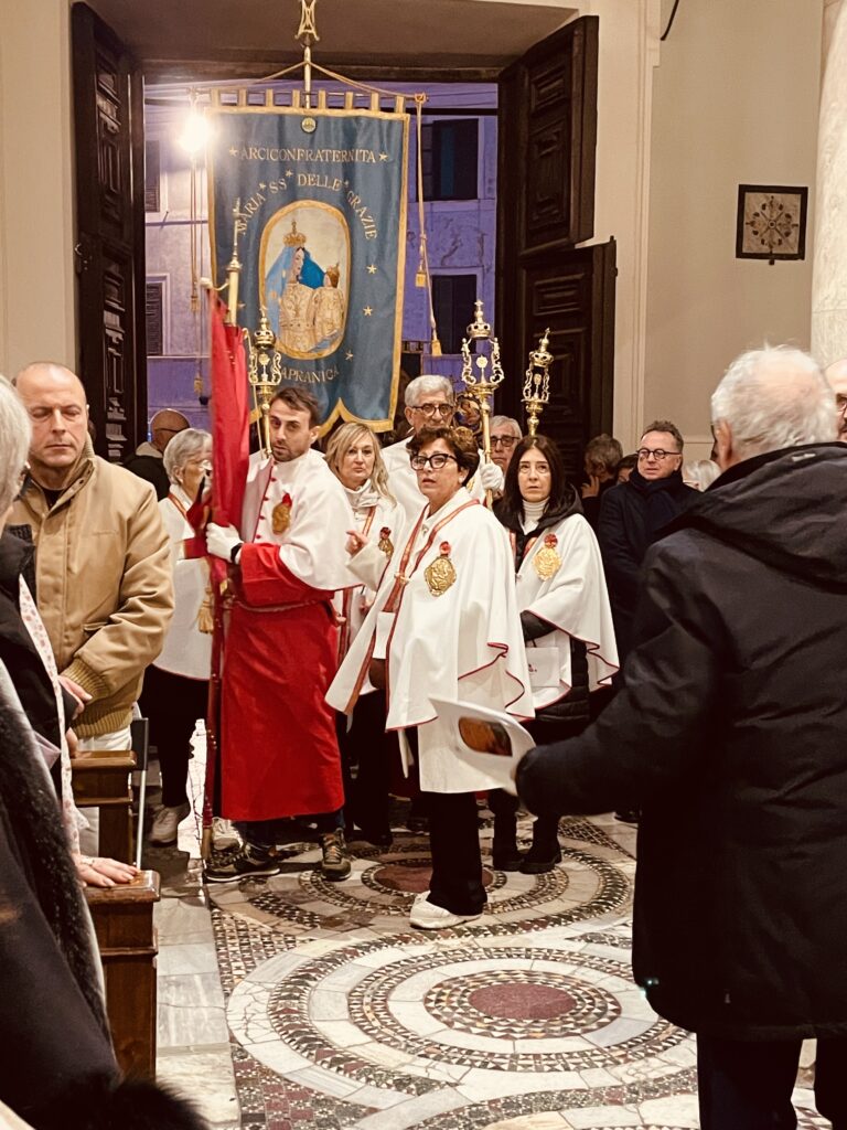 Per comprendere la portata dell’evento basti pensare che la Diocesi di Civitacastellana, estesa tra la città metropolitana di Roma Capitale e la provincia di Viterbo, comprende numerosi Comuni distribuiti su un territorio suddiviso in 76 parrocchie, raggruppate in 6 Vicarie. Erano presenti parroci e i rappresentanti istituzionali di tutte le Vicarie. Personalmente, vivendo nella Vicaria del Lago che comprende i comuni di Anguillara Sabazia – Bracciano – Canale Monterano – Manziana – Trevignano Romano ho potuto riconoscere con piacere il sindaco di Trevignano Romano, Claudia Maciucchi, il sindaco di Canale, Alessandro Bettarelli, il vice sindaco di Manziana, Remo Fiorucci. I sacerdoti della Vicaria, Don Giuseppe di Quadroni, Don Francesco Botta di Rignano Flaminio, Don Donelio di Manziana, Don Fernando di Bracciano, Don Enzo di Vigna di Valle, le suore francescane alcantarine di Manziana, suor Mariarita, suor Lara. Citare tutti sarebbe impossibile ma è grazie a tutti se questo evento è stato così sacro e solenne, direi unico, per il rispetto, la grande partecipazione e il raccoglimento di almeno mille fedeli, per l’organizzazione incentrata sull’ordine e sulla sicurezza.