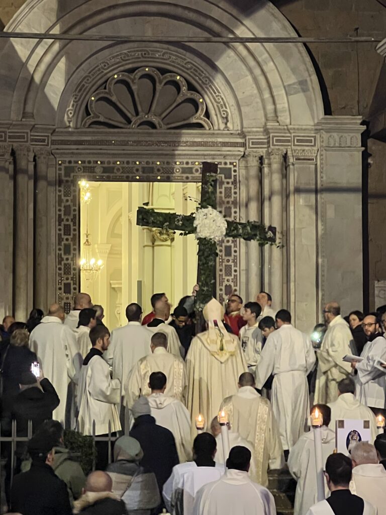 La processione è stata espressione del cammino verso il Regno di Dio, un richiamo peculiare al pellegrinaggio, elemento essenziale di questo Giubileo. Sul sagrato della Cattedrale, dove si potevano contare almeno 500 persone, è stata sollevata in aria la Croce invitando a riconoscerla come strumento e segno di salvezza e speranza.