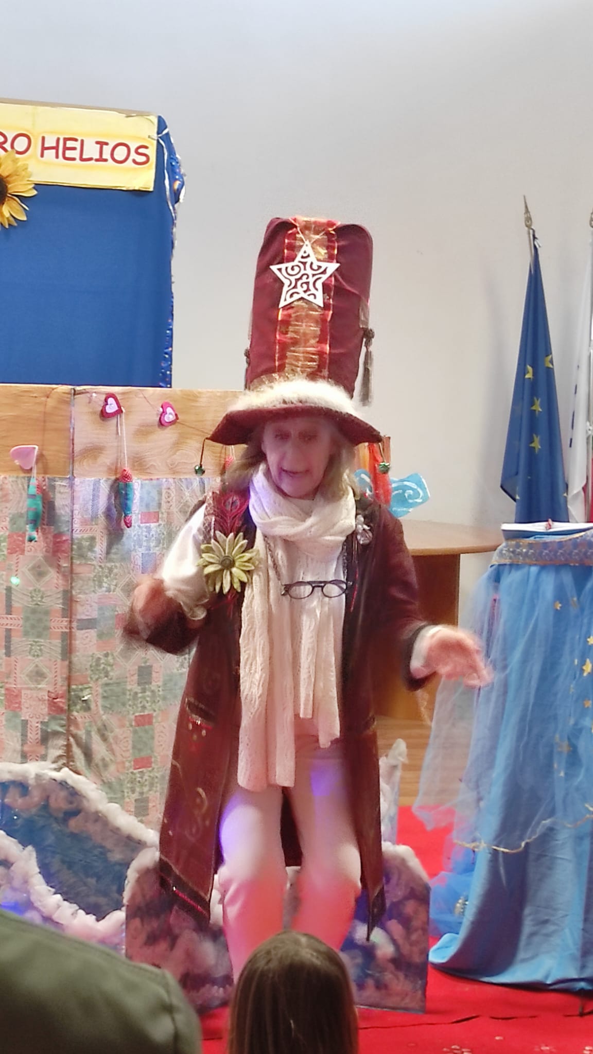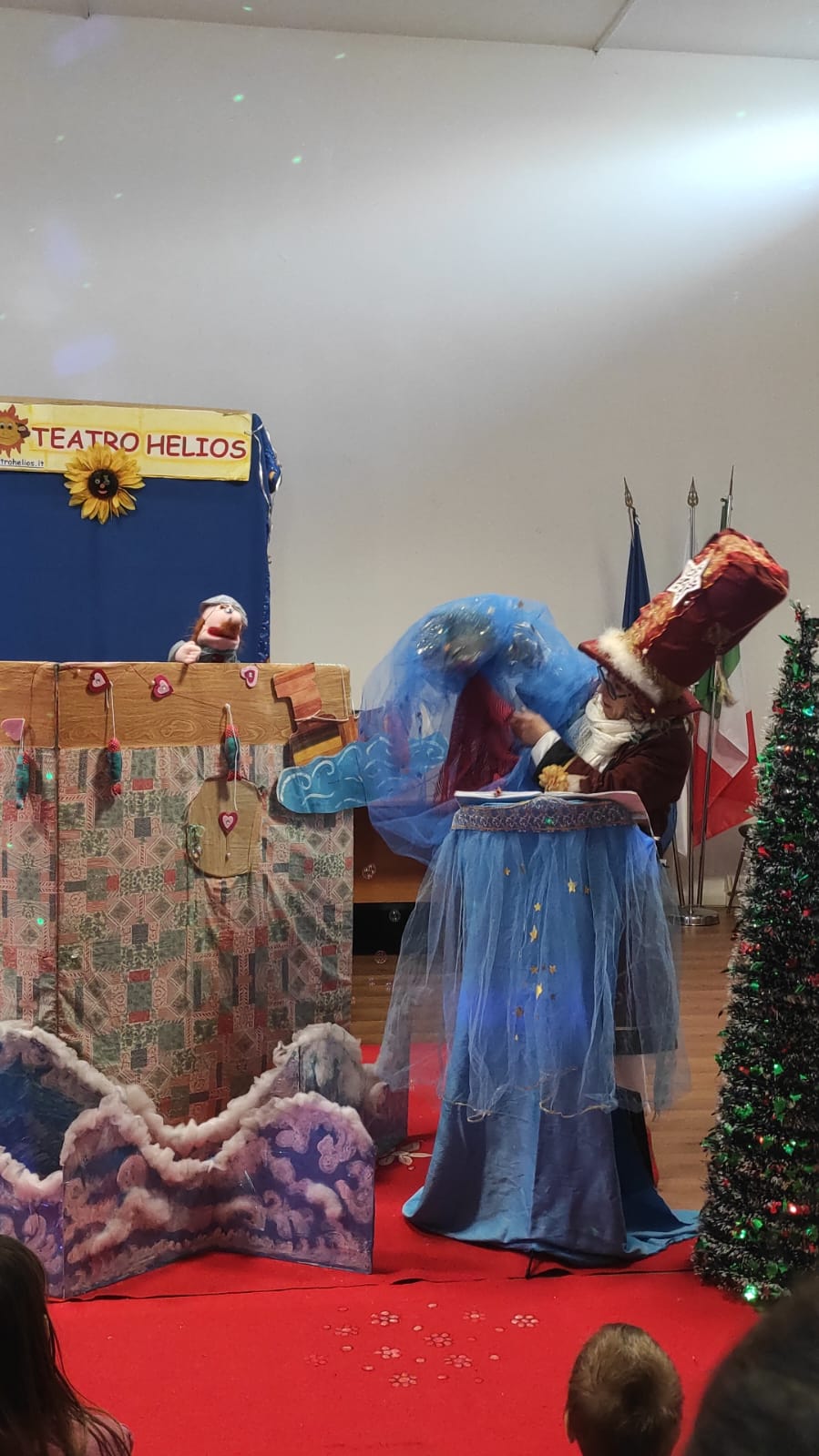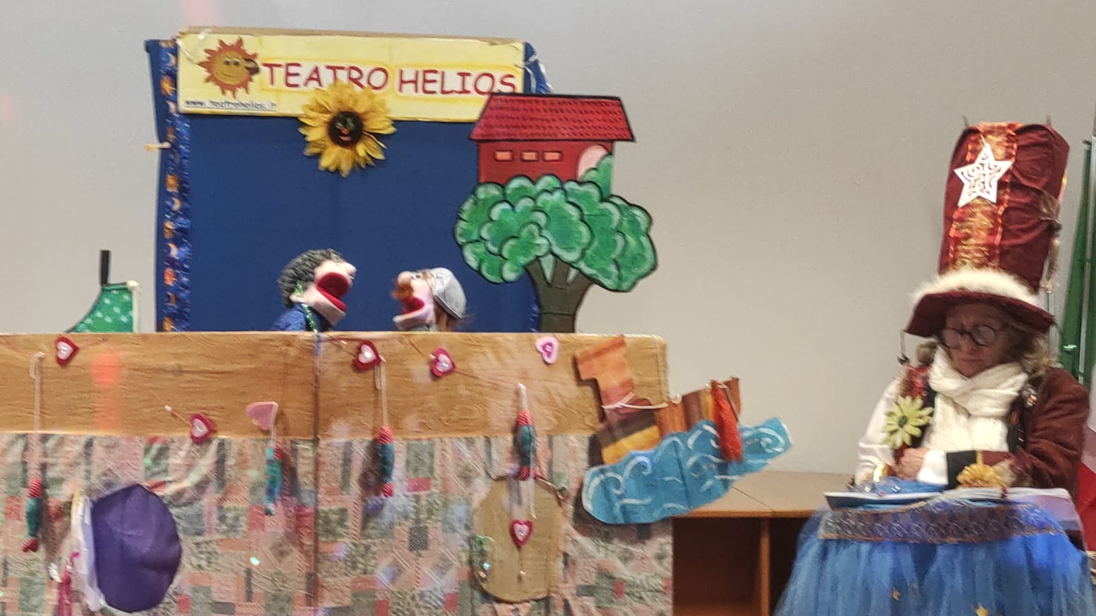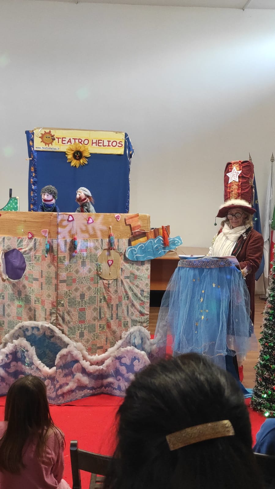 Per quanto riguarda le favole con il teatrino, come nel caso dello spettacolo di oggi, Annalisa Lanza è la voce narrante che guida il pubblico attraverso la storia. Sabrina Fiorani, mente creativa del gruppo, muove e dà vita ai personaggi, come i pupazzi protagonisti delle fiabe, occupandosi anche delle musiche insieme a Stefano Militi, attore e voce narrante in alcune rappresentazioni. Roberto Antoniozzi, completa la magia occupandosi degli effetti speciali, curando luci, immagini, musiche e scenografie che riescono a incantare grandi e piccini. Durante gli spettacoli al Castello, la compagnia si arricchisce ulteriormente, arrivando a includere fino a otto attori che interpretano personaggi leggendari come il Principe, il Fantasma e il Topo Birbante. Nel corso degli anni, il Teatro Helios ha portato la sua arte in festival prestigiosi, scuole, ospedali e biblioteche, raggiungendo un pubblico sempre più ampio e affettuoso. Tra le collaborazioni più significative si annoverano le oltre duecento favole prodotte anche per la tv Telepace con lo spettacolo “Buonanotte bambini”, un progetto che ha ricevuto il prestigioso premio UNESCO. Queste favole, trasmesse in televisione, sono oggi disponibili su YouTube, continuando a incantare grandi e piccoli. Le avventure estive sul Lago di Bracciano con la Nave dei Pirati, invece, hanno aggiunto un tocco unico alle performance del Teatro Helios, confermandolo come un punto di riferimento per l’intrattenimento educativo e creativo.