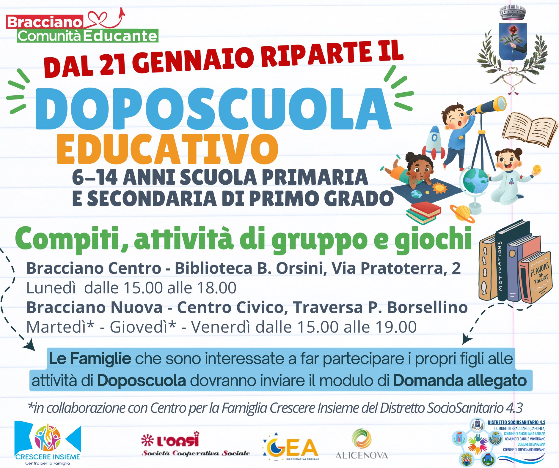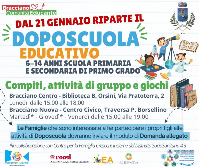 Bracciano, riparte il doposcuola educativo