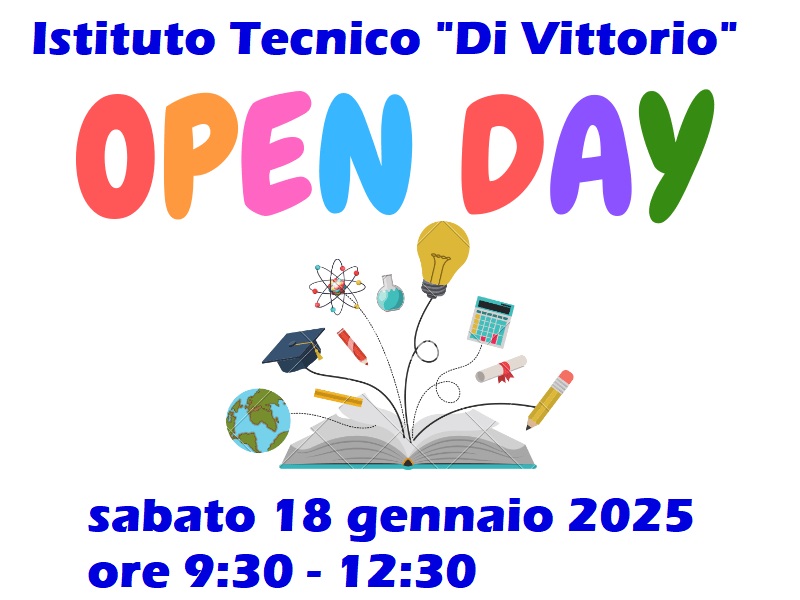 Sabato 18 gennaio, dalle 9:30 alle 12:30, l’Istituto Tecnico “Di Vittorio” apre le porte per l’ultimo Open Day dedicato agli studenti delle Scuole medie e ai loro genitori. Un’opportunità imperdibile per scoprire l’offerta formativa e gli indirizzi di studio dell’Istituto! Il Prof. Massimo Cerrocchi, Referente per l’Orientamento, illustrerà i percorsi didattici e le numerose attività che caratterizzano l’Istituto. Gli studenti potranno partecipare a coinvolgenti laboratori di: