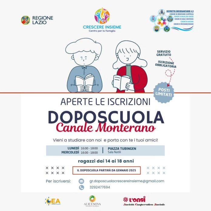 Canale Monterano, aperte le iscrizioni al doposcuola