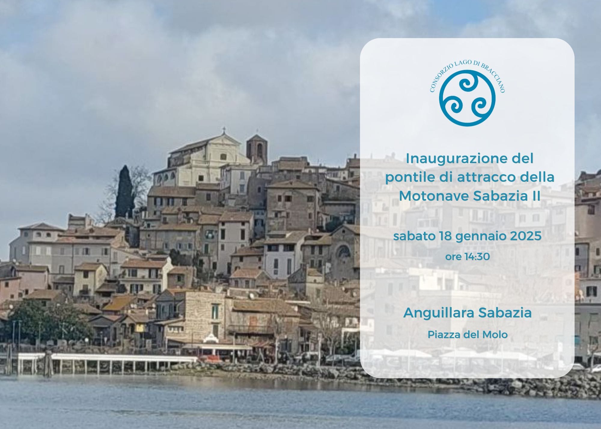 Il Consorzio Lago di Bracciano annuncia con entusiasmo l’inaugurazione del nuovo pontile di attracco della Motonave Sabazia II . L’evento si terrà sabato 18 gennaio 2025 alle ore 14:30 presso Piazza del Molo ad Anguillara Sabazia.