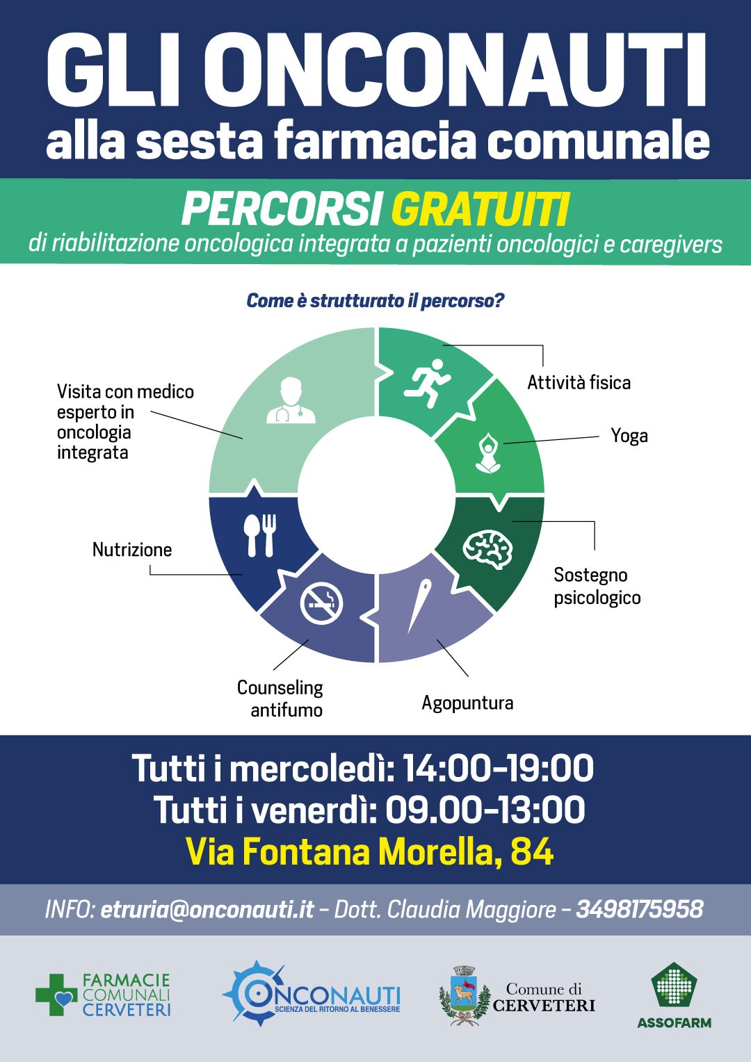 A partire dalla prossima settimana, la Farmacia Comunale 6 di Cerveteri ospiterà “Gli Onconauti”, l’associazione che si occupa dei pazienti oncologici e dei loro familiari offrendo percorsi di riabilitazione oncologica integrata.