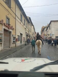 Il nostro servizio, si è prestato all’inizio della festa, accompagnando e seguendo costantemente i Butteri e gli spettatori, scortandoli, secondo il percorso prestabilito, mettendo le zone in piena sicurezza per lo svolgimento del tragitto.