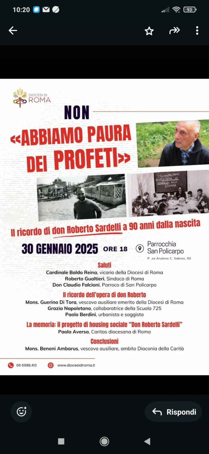 Roma, don Sardelli a 90 anni dalla nascita