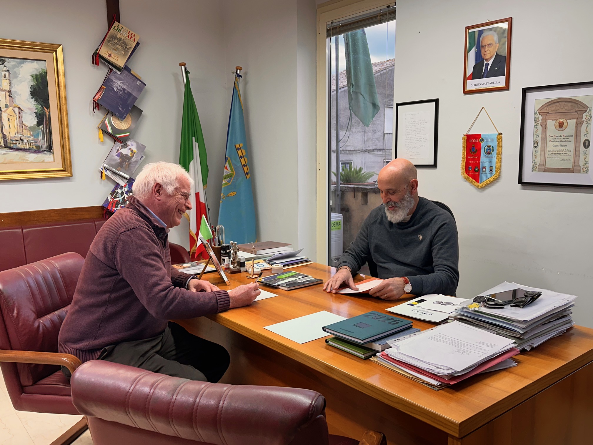 Accolto da due gentilissime componenti dell’amministrazione comunale, l’assessore Alessandra Bucci e la consigliera comunale Laura Paragona, davanti ad un grande presepe napoletano, posto al primo piano del palazzo comunale, il sindaco Alessio Telloni mi riceve sorridente nel suo luminoso ufficio, subito disponibile alle domande.