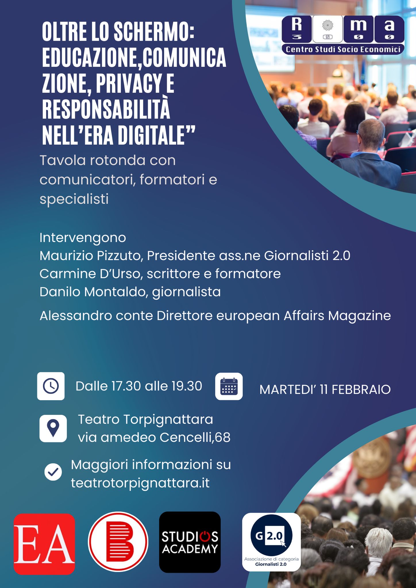 In occasione della Giornata Mondiale del Safer Internet Day, l’11 febbraio 2025, il teatro Torpignattara ospiterà la tavola rotonda “Oltre lo schermo: educazione, privacy e responsabilità nell’era digitale”, un incontro aperto al pubblico che vedrà la partecipazione di esperti della comunicazione, del giornalismo e dell’informazione per affrontare le sfide della società digitale iperconnessa.