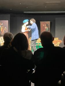 I tempi teatrali sono scanditi da variazioni temporali che snocciolano via via il dramma di Artemisia ma anche quello di Francesco che lamenta alla sorella un legame quasi incestuoso con il padre che la istruì sin da subito alle arti della pittura. Lei primogenita di sei fratelli perse la madre in tenera età e dovette districarsi nella crescita degli altri fratelli ma il sodalizio artistico con il padre si strinse al tal punto che anche lei interveniva sulle sue tele per poi cominciare da sola a muovere i primi passi. Il dramma sembra essere universale, la gelosia tra fratelli è un tema molto ricorrente che va d’accordo con la originale temporalità data all’opera quasi ad indicare che il conflitto esiste nel passato ma anche nel presente.