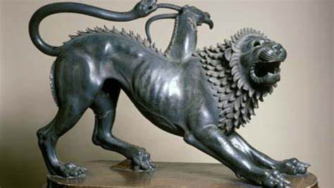 Presente anche “La Chimera”, giunta da Firenze dove è conservata. Trattasi di un bronzo etrusco che rappresenta un corpo con testa di leone, coda di serpente e una testa di capra sul collo. Fu ritrovato con gli scavi ad Arezzo, nel 1553, e proprio il Vasari ne riconobbe l’alto valore artistico suggerendone la ristrutturazione.