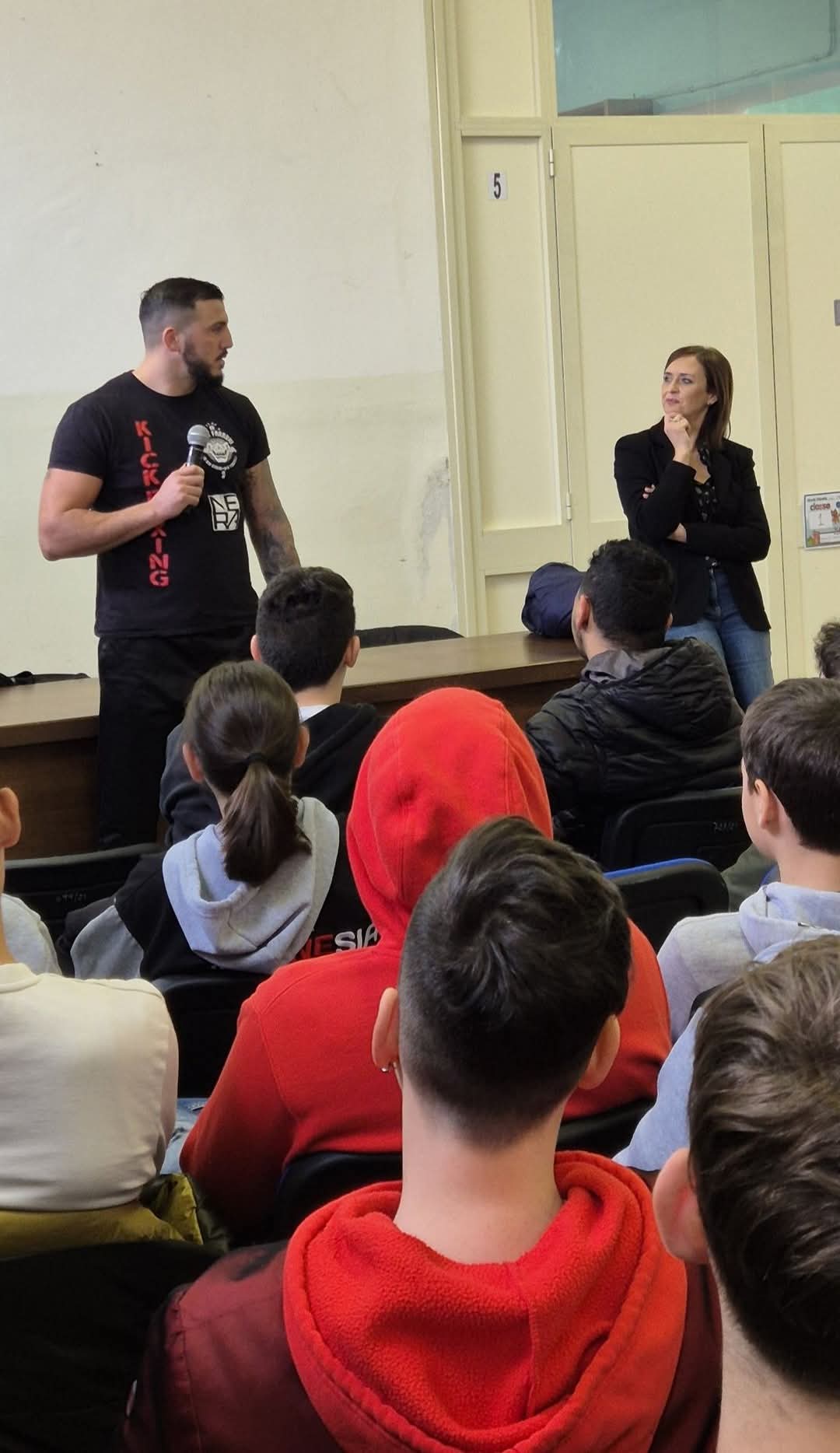 Mattia Faraoni, atleta di fama internazionale e punto di riferimento per tanti giovani, ha condiviso con gli studenti la sua esperienza personale e sportiva, ribadendo l’importanza dello sport come strumento di crescita, disciplina e rispetto reciproco. In particolare, ha spiegato ai ragazzi della scuola secondaria di primo grado e dell’Istituto Agrario che tra le prime regole che insegna lo sport da contatto c’è proprio il rispetto dell’avversario. Si può quindi “combattere” in maniera sportiva puntando alla vittoria agonistica e non certo a fare del male al proprio avversario. Il campione, noto per il suo impegno nella sensibilizzazione al tema del bullismo, soprattutto attraverso i social media, ha ascoltato le storie personali dei ragazzi e ha risposto alle loro domande, offrendo spunti di riflessione, incoraggiandoli a non restare in silenzio di fronte a episodi di prevaricazione.