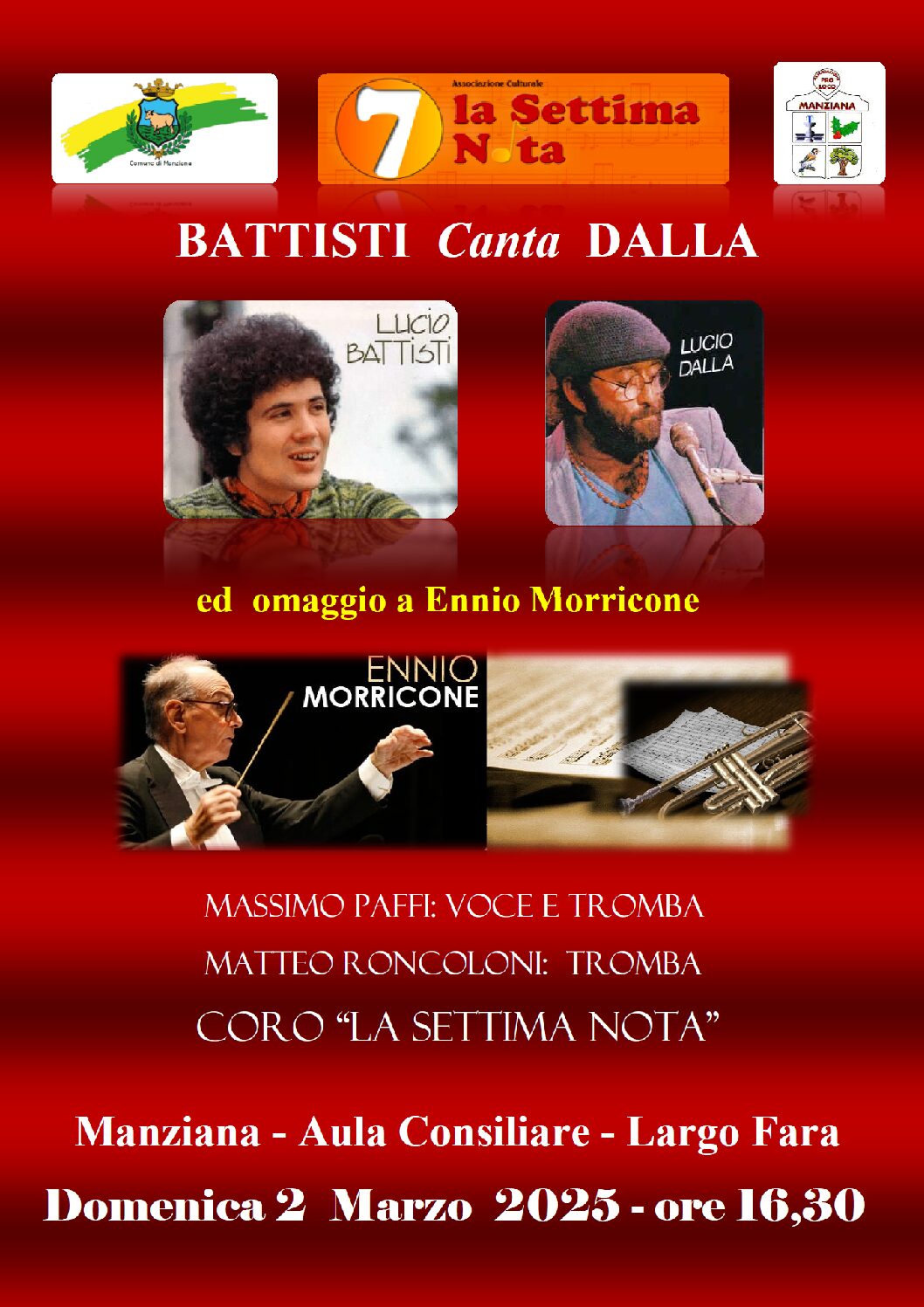 Dalla “Settima Nota” , con voce e tromba di Massimo Paffi, con la tromba di Matteo Roncoloni, si fa omaggio a Lucio Dalla, a Lucio Battisti, alle colonne sonore di Ennio Morricone