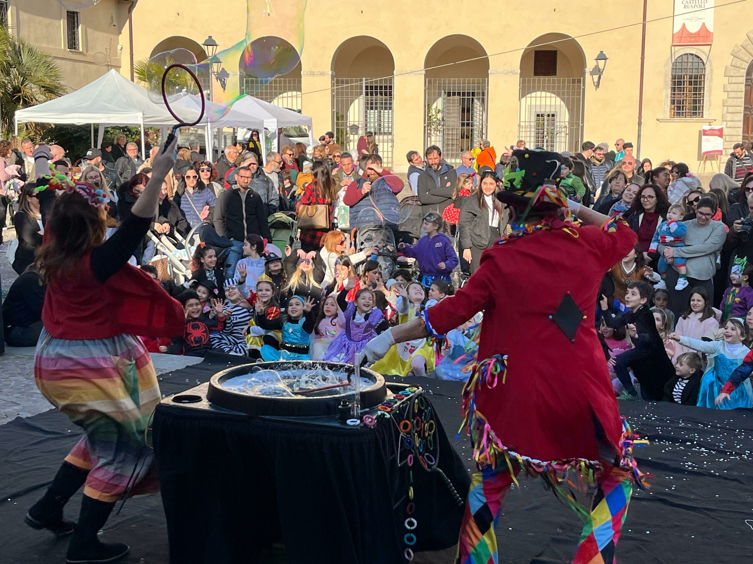 Coriandoli, maschere, uno straordinario spettacolo di bolle di sapone, il volo di “FluFluns” spiccato dai merli del Museo Nazionale Cerite e castagnole a volontà: questi gli ingredienti della festa andata in scena in Piazza Santa Maria a Cerveteri.